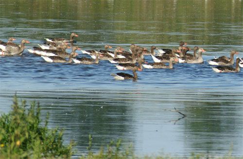 Die Graugans beginnt als erste der hier behandelten Arten mit der Großgefiedermauser. Bereits Mitte Mai können erste flugunfähige Tiere beobachtet werden, um den Monatswechsel Mai/Juni haben die meisten Vögel mit der Schwingenmauser begonnen und in der ersten Juni-Hälfte sind nahezu alle Graugänse flugunfähig. In den kommenden 14 Tagen ist somit der optimale Zeitpunkt, an geeigneten Gewässern mausernde Graugänse zu erfassen. Besonders Gebiete, in denen Sie bereits in den letzten Wochen größere Graugans-Gruppen beobachtet haben, lohnen eine gezielte Kontrolle.