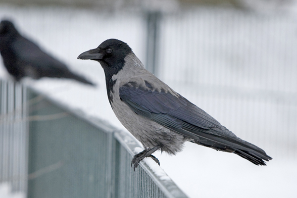 Nebelkrähe: Bei potenziellen Nebelkrähen sollte genau auf den Umfang der grauen Federn besonders auf der Unterseite und den Unterschwanzdecken geachtet werden. Nebelkrähen zeichnen sich durch ein zweifarbiges Gefieder aus: Der Körper und die Unterschwanzdecken sind grau, während Flügel, Schwanz und Kopf sowie der ausgefranste Brustlatz schwarz sind. Bitte erfassen Sie solche Vögel als „Nebelkrähe“.